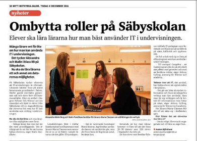 I samma tidning finns en artikel om situationen i Salems kommun. Här har IT-satsningen varit låg vilket resulterat i att eleverna får utbilda lärarna i hur man kan använda IKT i skolan. På en högstadieskola räknar man med att det finns 20-30 datorer på 120 elever.